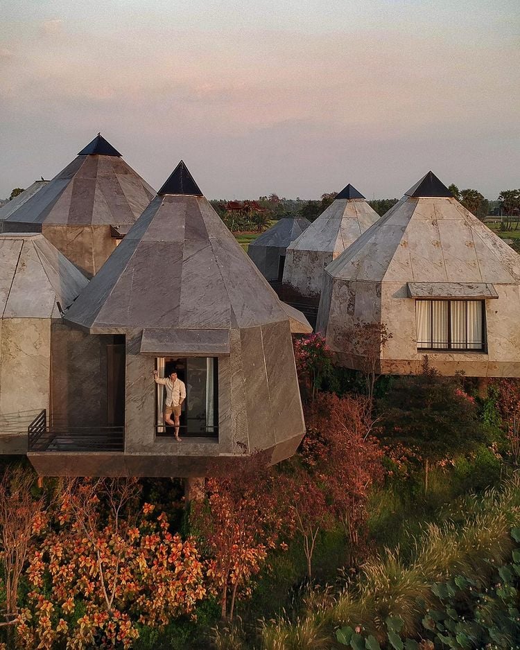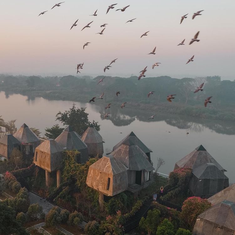 Nơi đây có hơn 40 phòng với những phòng cao cấp hướng thẳng ra sông Noi, nhà trên cây, biệt thự hồ bơi với diện tích khác nhau, nhưng đều đảm bảo đầy đủ tiện nghi cực sang trọng. Những căn phòng có thiết kế hình chóp bắt mắt với màu xám trắng của gạch bao bọc bên ngoài, cực kì hợp cho những tâm hồn đam mê sống ảo, chiều hoàng hôn bạn còn được ngắm đàn chim bay thành đàn về tổ. Ngoài ra, bạn sẽ không tìm được những sản phẩm từ nhựa ở đây để bảo vệ môi trường.