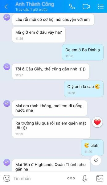 Chuyện là tui với anh kia người quen cũ, gần đây nhắn tin tui nói chuyện được một tuần. Vì là có biết nhau lâu rồi nên ổng mời tui đi ăn uống này kia vài lần cái ổng tỏ tình, nói là ế cả năm rồi giờ quen đại từ từ hiểu sau??? ![]()