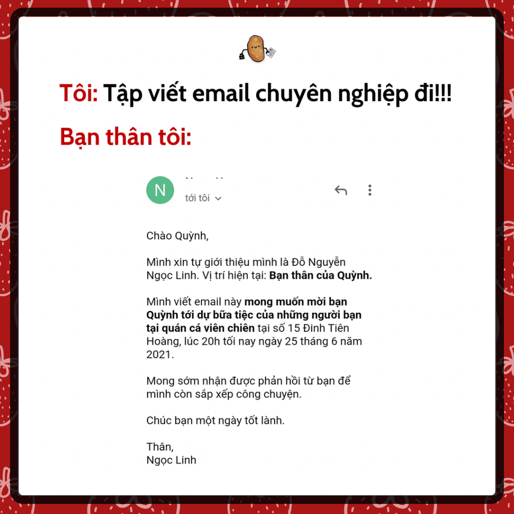 Chúng ta đã được làm quen với việc sử dụng email ngay từ những ngày đầu học về tin học cơ bản. Tưởng có vẻ dễ ăn, nhưng việc giao tiếp qua email, đặc biệt là trong môi trường làm việc, đòi hỏi một số chuẩn mực nhất định. Để tránh trường hợp gửi email thiếu đầu, thừa đuôi, gây mất điểm trong mắt nhà tuyển dụng các bạn hoàn toàn có nghiên cứu mẫu mail trên mạng để xem format nội dung, bố cục để từ đó soạn mail cho riêng mình.