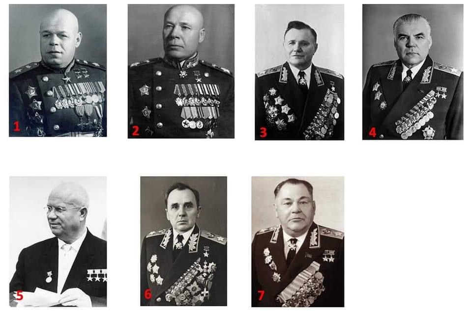 5) Nikita Khrushchev (1894, sinh ra ở Kursk nhưng cha mẹ gốc Ukraine, ngay sau đó gia đình chuyển về gần Kharkov) trung tướng-chính uỷ và sau này Bí thư thứ nhất Đảng Công Sản Ukraine rồi Liên Xô. Krushchev đã là chính uỷ và đại diện của Stalin ở trận Stalingrad năm 1942.