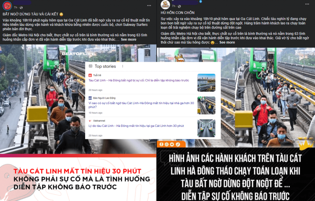 Thứ nhất, những bức ảnh mà những tờ báo, trang mạng sử dụng được lấy từ một cuộc diễn tập được thông báo trước từ cuối năm 2020 tại điểm Văn Quán và ga Cát Linh. Chứ éo phải là từ cuộc “diễn tập không được báo trước” vào tối hôm qua. Việc đưa những bức ảnh trên vào bài viết và ghi hẳn những dòng viết khiến cho những não trạng không biết suy nghĩ lao vào chửi bới là chính quyền, cán bộ mặc kệ người chạy trên đường ray (?), không thấy cứu hỏa và cứu nạn đâu (?)…. Tại sao họ không nhận ra là mấy bức ảnh trên được chụp lấy nét, to rõ thẳng hướng vào đoàn người? Sự cố đột xuất gì mà lại có nhà báo với thiết bị chụp ảnh hiện đại, đường hoàng chụp ngay tại đường ray như thế?