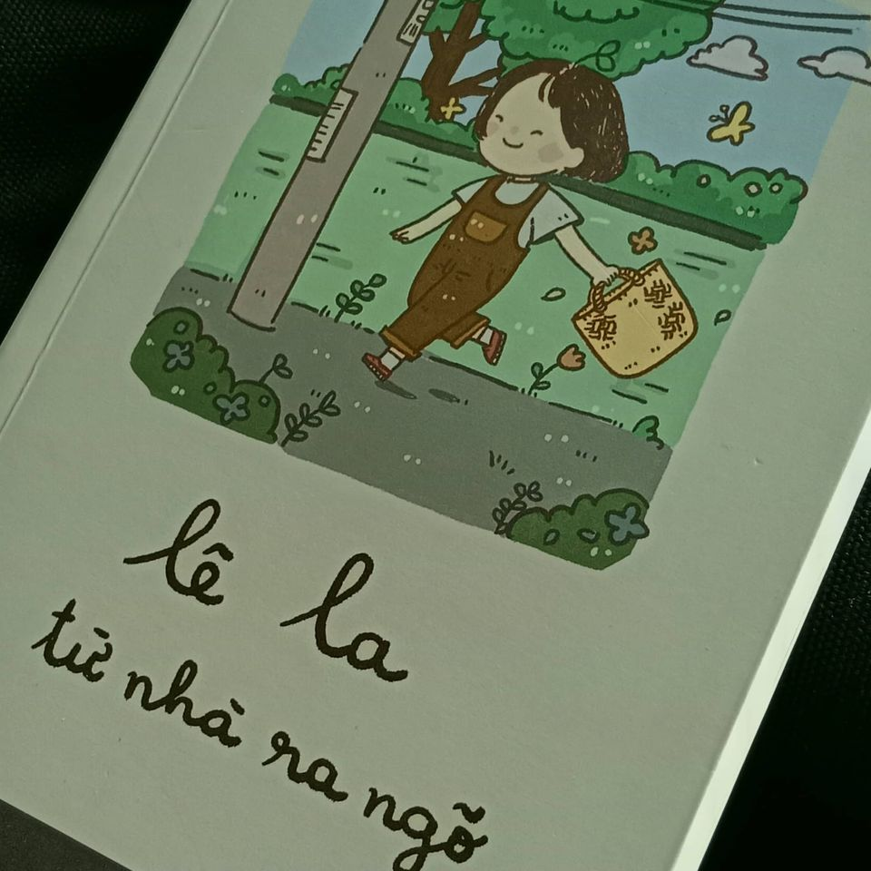Lê La Từ Nhà Ra Ngõ là một cuốn sách tản văn nhỏ xinh với chiếc bìa tone xanh lá chủ đạo, chứa những câu chuyện ngắn dễ thương mà ta thường bắt gặp trong cuộc sống hàng ngày.