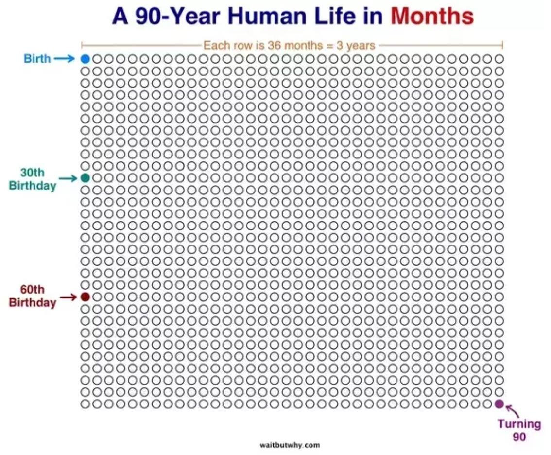 Thậm chí nếu đổi những vòng tròn này thành 1 năm thì bạn chỉ có vỏn vẹn 90 vòng tròn trong suốt cuộc đời.
