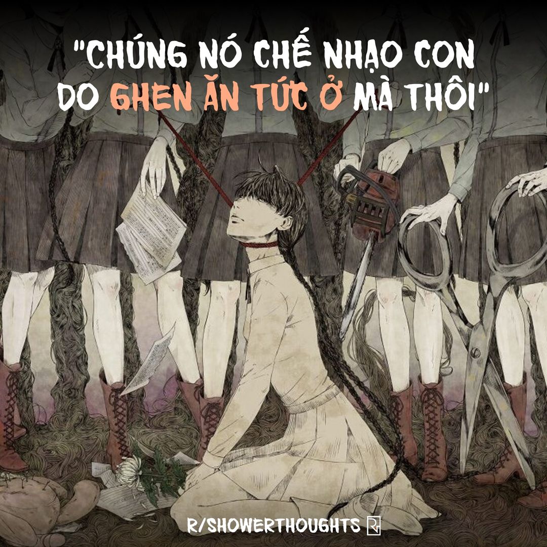 Tôi hiểu ý bạn và hoàn toàn đồng quan điểm ở một vài phần, nhưng đôi khi chính tôi lại là người nói “chúng nó chỉ ghen tị với con thôi” bởi vì, một là, chúng sẽ hoàn toàn ảo tưởng bản thân là cái để người khác ganh đua và chúng sẽ ước rằng điều đó là sự thật. Hai là, chúng sẽ coi đó như là một cách để phớt lờ đi những lời chỉ trích hay ý kiến khác, hoặc những phản ánh đôi khi là sự thật, vậy nên chúng sẽ không bao giờ nhìn nhận lại bản thân nữa.