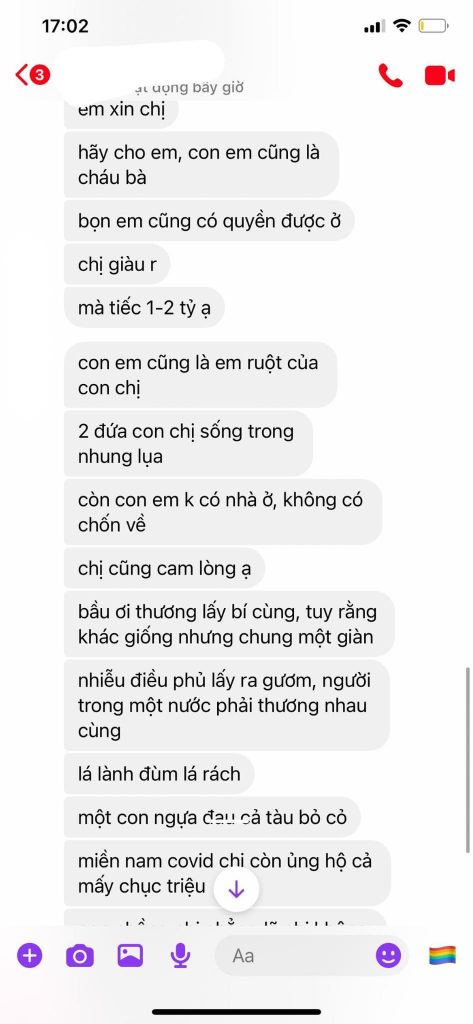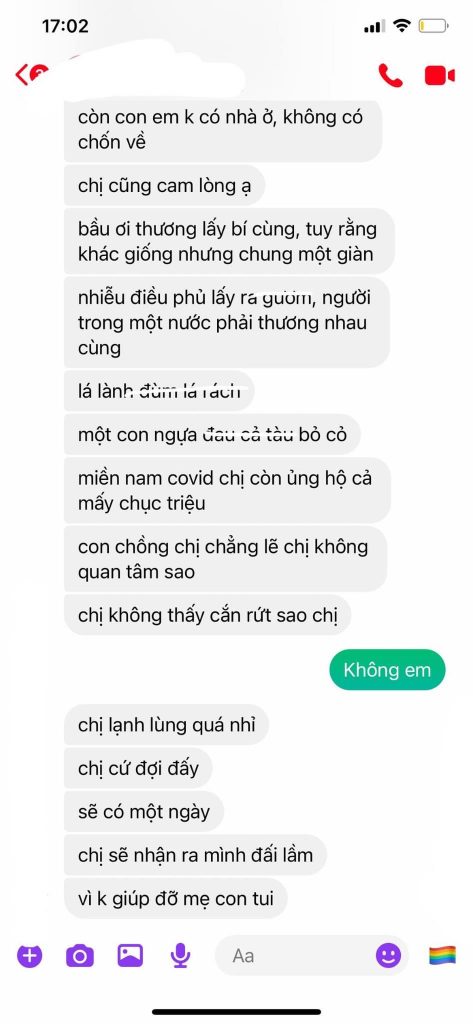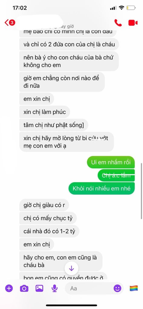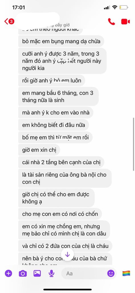 Bẵng đi một thời gian, mẹ con em đang sống rất vui vẻ hạnh phúc, cứ cuối tuần ông bà nội lại lên nhà em, gia đình rất vui vẻ, thì hôm nay em nhận được tin nhắn của 1 nick ảo, không có ảnh của ai, có thể là nick của chồng cũ em, vì vẫn còn tin nhắn phía trên, chắc nó dùng để theo dõi em lâu nay nhưng em không quan tâm. Sau tin nhắn em mới nhận ra đó là bồ của chồng em, người khiến cuộc hôn nhân của em kết thúc.