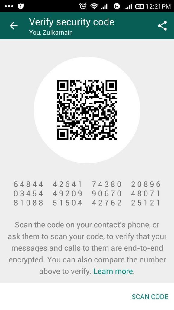 Quét mã QR của nhau hoặc đối chiếu những con số này để kiểm tra các bộ public key là khớp với nhau giữa 2 người
