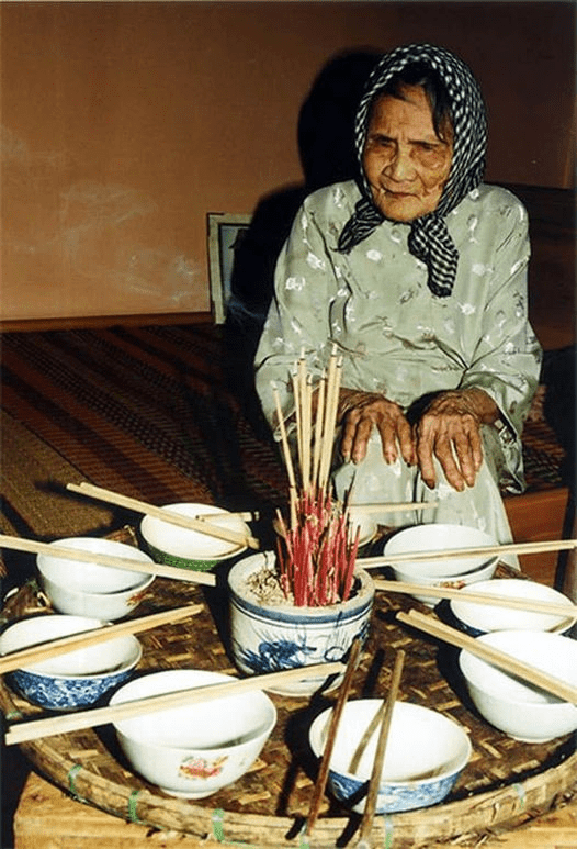 Bức ảnh do Đại tá Trần Hồng chụp mẹ Thứ ngồi trước mâm cơm với 9 bộ bát đũa bày ra để tưởng nhớ các con và coi đó là sự sum vầy, rồi ông viết: “Bất chợt bữa đến nhà, tôi thấy Mẹ đang ngồi như thế này. Bà bảo tôi rằng bà vẫn đợi nó về. 9 thằng chắc chắn có một thằng về với tôi, chắc chắn thế”.