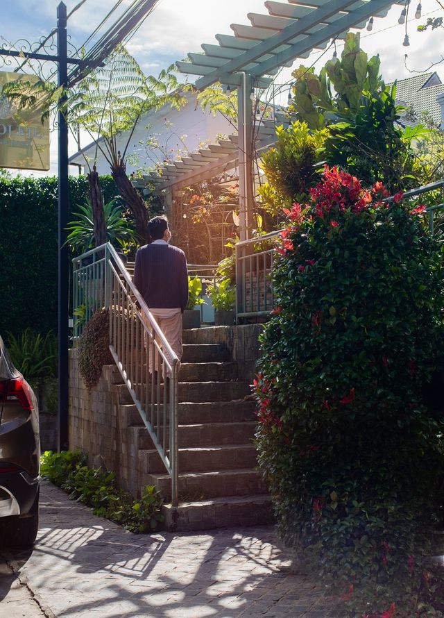 Khách sạn cách trung tâm khoảng 3km, với nhiều khách lưu trú thì đây có thể là điểm họ không thích nhưng mình thì thấy đây là ưu điểm. Ở xa trung tâm một chút mình có thêm cơ hội được phóng xe máy đi dạo lâu hơn, tận hưởng được không khí Đà Lạt đúng nghĩa.