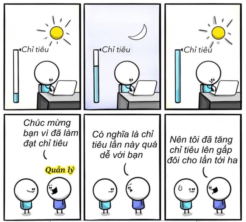 Tình huống: A còn trẻ, vô cùng nhiệt huyết trong công việc. A làm việc ngày đêm để đạt KPI, thậm chí là vượt cả KPI sớm hơn dự kiến, nhiều lúc còn gánh luôn cả đồng nghiệp. Nhưng càng làm tốt thì A lại càng phải làm nhiều hơn, làm đến hao mòn nhưng lương mọn cũng không hơn là mấy.