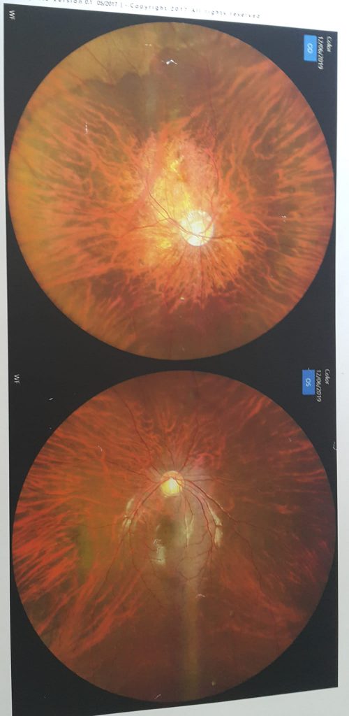 Ảnh dưới là ảnh chụp mạch máu ở mắt của mình và mình cũng để mọi người ảnh mắt bình thường để dễ tưởng tượng. Cuối cùng, chúc các bạn bảo vệ tốt mắt mình và không đi vào vết xe đổ của mình!