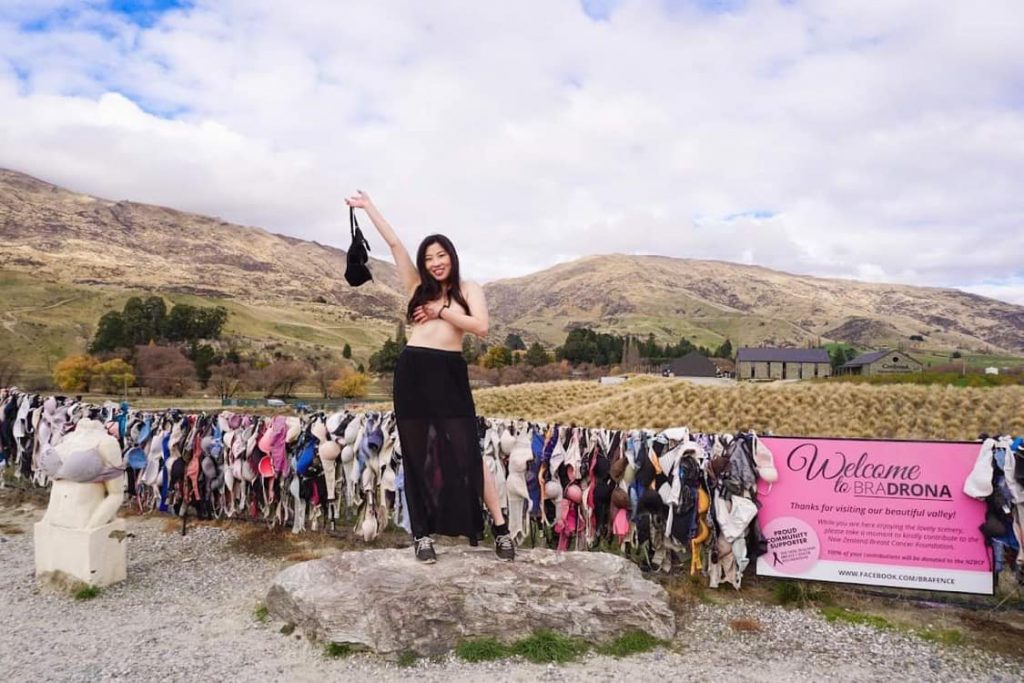 Cách Queenstown khoảng 1h chạy xe, 60km có cây cô đơn Wanaka nổi tiếng, là điểm ước mơ của dân chụp hình. Trên đường tới đây sẽ đi qua ngôi làng đặc biệt có tên là Cadrona (thường gọi là Cadrona Bra Fence) nổi tiếng với những hàng rào treo áo ngực, có thời điểm treo đến 100.000 cái. Nhiều người e ngại việc này gây nguy hiểm cho cánh lái xe nam nhưng cứ gỡ đi thì lại có người treo lên. Tùy thời điểm đi qua có thể sẽ nhìn thấy áo ngực còn hay không. Nhưng có một điều kì lạ là cứ gỡ xuống thì áo ngực sẽ lại xuất hiện nhiều hơn rất nhiều. Nếu rãnh hãy dừng chân “tự sướng” vài kiểu, nếu muốn bức ảnh để đời thì nhờ tài xế chụp dùm cảnh nude bán thân đang vung vẩy áo ngực cho nó truất’s. Tiếc là nhìn ngộp thở quá, lại là man nên không dám chụp vì sợ kiệt sức, vì choáng vì lần đầu nhìn thấy nhiều đến thế, không thể tiếp đi thêm được nữa, lén lấy được vài cái Cup C cho đến tận Cup I luôn, mang về làm quà tặng vợ xếp và vợ của mấy thằng hàng xóm ahihi hoặc dùng làm tấm lót tay khi cầm nồi nóng do hay nấu mì buổi tối cho êm tay, giữ nhiệt tốt. Điểm này hay ở chỗ nếu chú nào dẫn bạn gái mới quen đi chơi, chụp cho bạn gái mấy kiểu để đời là tha hồ ngắm thoải mái con gà mái luôn, tối về lại có thưởng mà không cần nói nhiều.