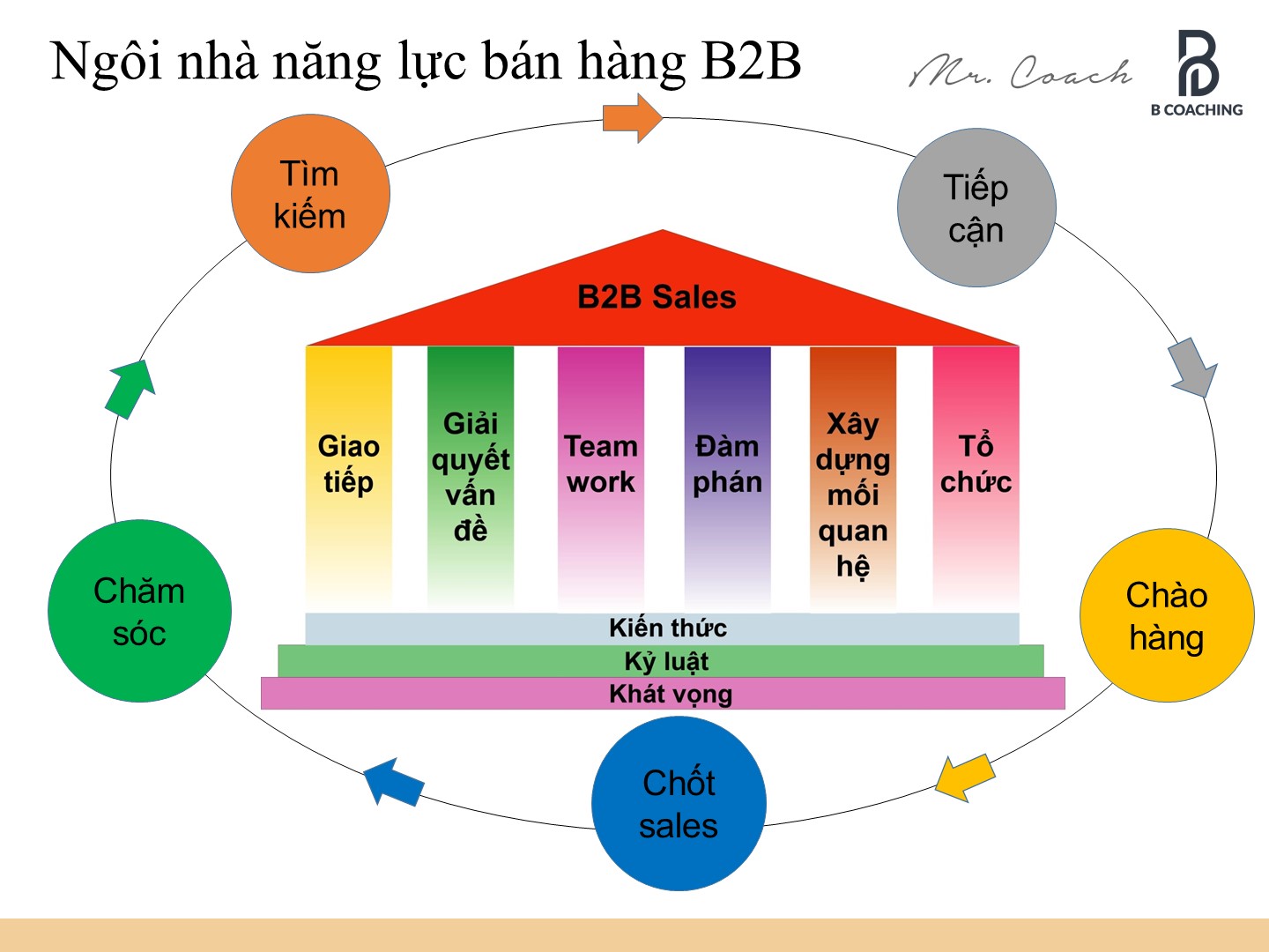 Sự xuất sắc trong bán hàng không phải tự nhiên mà có. Nó là kết quả tổng hòa của công thức 4K: Khát vọng, Kỷ luật, Kiến thức và Kỹ năng. Đó chính là NGÔI NHÀ NĂNG LỰC BÁN HÀNG B2B