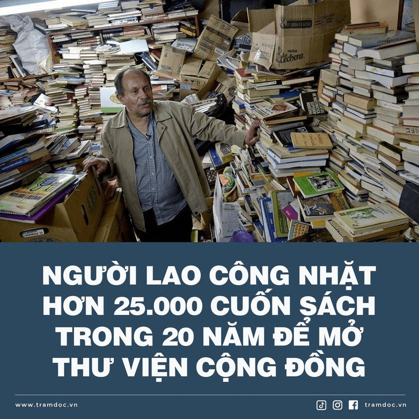 Jose Alberto Gutierrez, một công nhân vệ sinh ở Colombia, đã thu nhặt những quyển sách bị vứt đi trong suốt 20 năm. Sống trong một khu vực có thu nhập thấp, Gutierrez quyết định bắt đầu thu nhặt sách khi nhận thấy trẻ em ở địa phương bỏ học và đi làm sớm vì không có tiền mua sách.