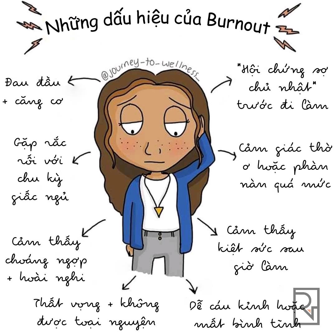 (*Burnout: WHO định nghĩa burnout là “hội chứng gây ra bởi căng thẳng mãn tính không kiểm soát được ở nơi làm việc”. Người mắc hội chứng này sẽ có các đặc điểm như sau: cảm thấy cạn kiệt năng lượng hay kiệt sức, cảm thấy ngày càng xa cách về mặt tinh thần – tức cảm thấy tiêu cực, hoài nghi – với công việc mình đang làm và cuối cùng là hiệu quả chuyên môn giảm sút.)