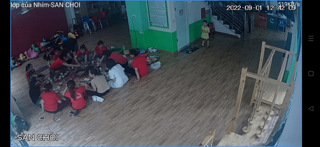 Đây là ảnh chụp cam các cô trường mầm non con nhà mình đang học. Có lẽ sắp vào năm học mới nên các cô tổ chức một bữa liên hoan nho nhỏ, nghỉ lễ 2-9 luôn. Các cô phải tranh thủ cho các con ngủ trưa xong xuôi mới xuống dọn đồ ăn, bưng bê nồi bếp các thứ, lúc đó là 12h30. Cô chủ nhiệm lớp con mình thì không thể tham gia vì còn ở lại trông các con ngủ do lớp bé nhất. Nghĩ thấy thương các cô. Ăn uống cũng phải tranh thủ, rồi nhanh lẹ kẻo đến giờ các con dậy. Ngày thường thì cũng phải chăm lo các con ngủ nghỉ ổn thỏa mới được nghỉ chút, như lớp con mình bé nhất thì hầu như các cô không được nghỉ trưa mấy khi vì các bé hay quấy khóc, nhất là khi có bé mới…