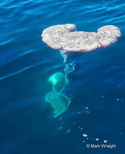 Điều này có nghĩa là ở gần đó có một em bé cá voi vừa mới chào đời, và nhau thai sau khi rời ra khỏi cơ thể cá mẹ và cá con đã nổi lên mặt nước, trước khi nó bị các loài động vật biển ăn mất.