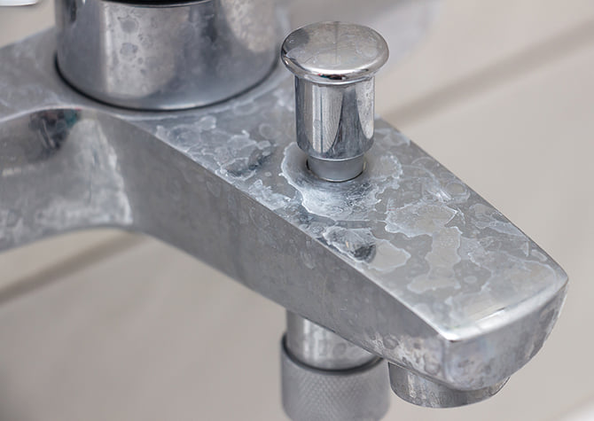 Hãy xem lại vòi nước, bồn rửa mặt, gương kính trong phòng tắm: nếu có các vết cặn trắng bám trên bề mặt, thì chắc chắn bạn đang sử dụng nước cứng để rửa mặt và tắm gội!