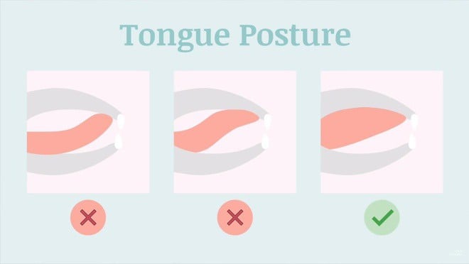 Sau khi xác định được vị trí đặt đầu lưỡi, thì bạn hãy để im đầu lưỡi ngay phần hõm này và nuốt nước bọt vào. Động tác nuốt nước bọt này sẽ giúp cho toàn bộ phần mặt trên của lưỡi dán chặt vào phần hàm trên. Và đây là tư thế mewing đúng, khi đã đặt đúng tư thế thì bạn chỉ cần thêm một ít lực ở phần lưng lưỡi nhằm đẩy hàm trên theo hướng lên trên và ra trước là xong. Lưu ý không để đầu lưỡi đẩy vào răng cửa, nếu không sẽ khiến răng cửa bị hô, vẩu.