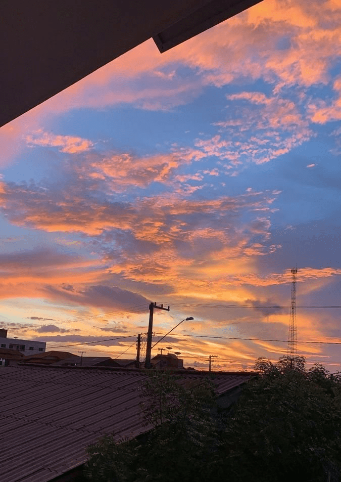 It was a very very beautiful afternoon. The sky was this perfect pastel pink. That was seeping into orange and purple, and the clouds were a wispy white that just strung across the atmosphere.