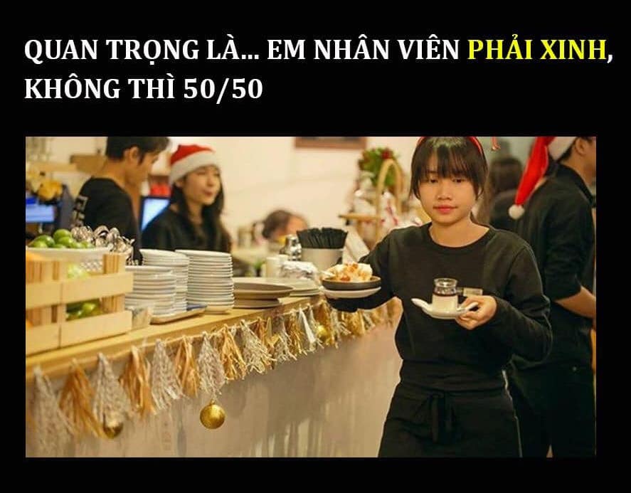 Cuối cùng là…em nhân viên phải xinh, không xinh thì…50/50. He he…