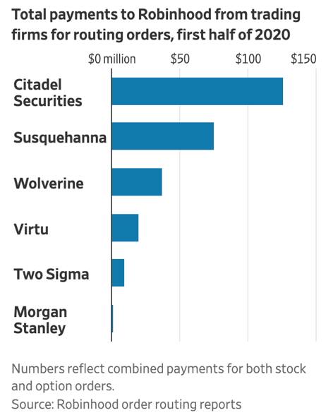 Khi Robinhood tham gia thị trường đã khiến các nhà môi giới khác điều chỉnh lại chính sách của mình và củng free. Bởi vì Robinhood không sống bằng phí mà sống bằng cái gọi là “payment for order flow” (PFOF)từ các market maker như Citadel. Nói một cách đơn giản, PFOF là một loại phí mà các anh tay to như Citadel trả cho Robinhood để biết xu hướng thị trường.