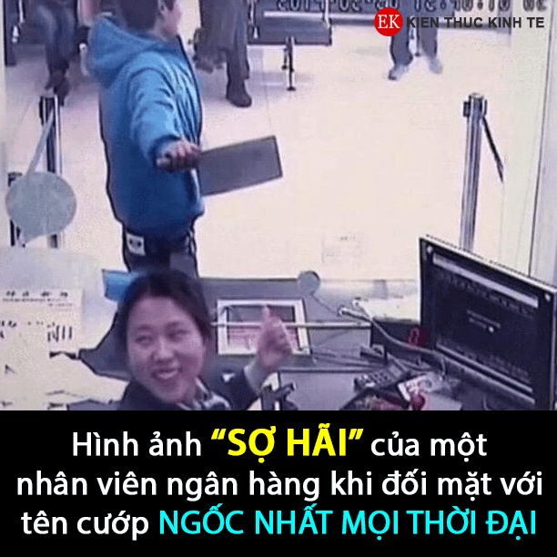 Một nữ nhân viên tại quầy chăm sóc khách hàng của Ngân hàng xây dựng Trung Quốc đã trở thành tâm điểm của sự chú ý khi cô đối mặt với kẻ cướp ngân hàng mà vẫn tươi cười.