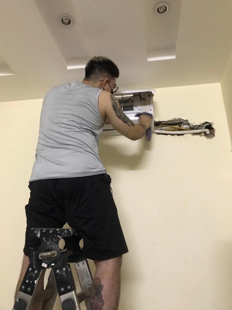 - Điều hoà không mát à? Vệ sinh gì chưa?