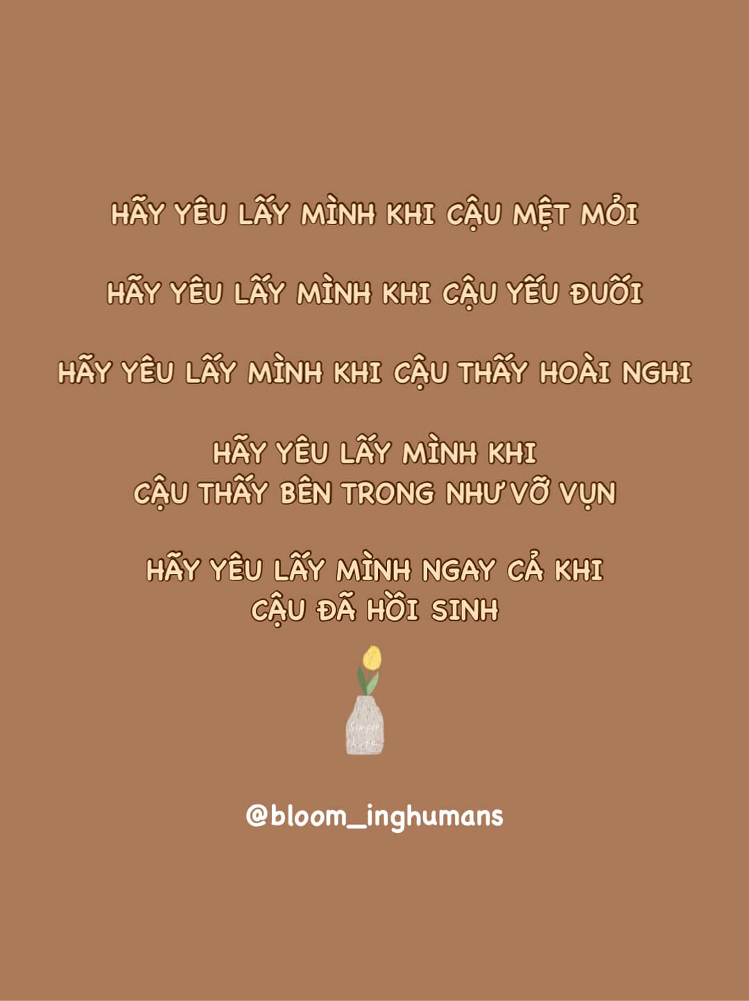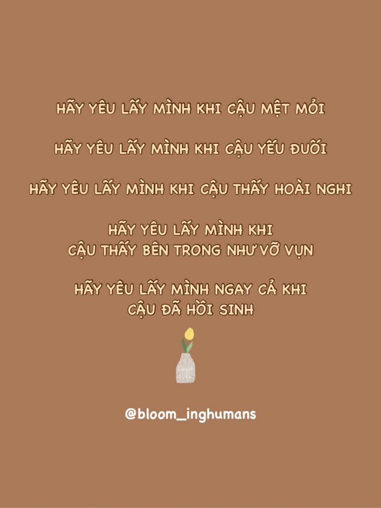 Tớ hy vọng một ngày nào đó, cậu có thể yêu thương trọn vẹn bản thân và tự hào về hành trình mà cậu đã đi, về những sự thay đổi, những sự tiến bộ dù là nhỏ nhất.