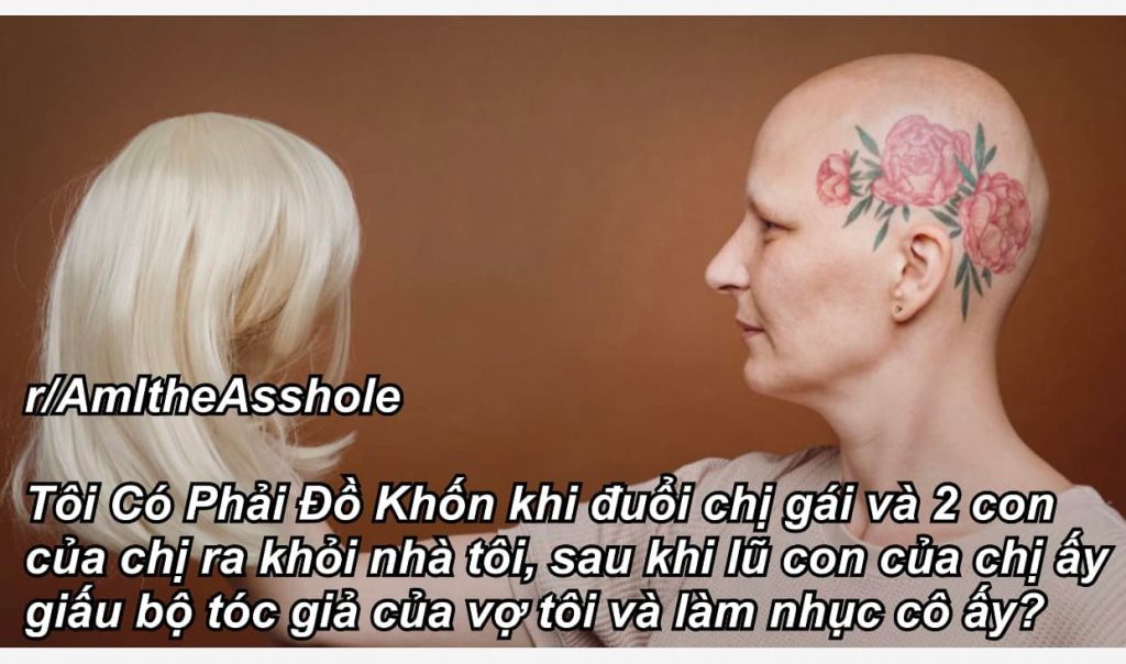 Chị gái tôi mất căn hộ của mình sau vụ ly dị bừa bộn và chuyển vào nhà tôi ở với 2 cô con gái (16t) được gần 1 tháng rồi. Mọi thứ đều ổn thỏa ngoại trừ việc lũ cháu tôi thích nhận xét về bộ tóc giả của vợ tôi. Tụi nhỏ hỏi nhiều câu về nó lắm, không ngừng luôn. Chúng hỏi muốn thử đội nó lên, gợi ý “duỗi thẳng” nó ra và này nọ, nghe mệt dã man. Tụi nhỏ còn tạo áp lực muốn xem cô ấy khi không đội tóc giả và điều đó khiến cô ấy không thoải mái lắm luôn lẫn từ chối nữa.