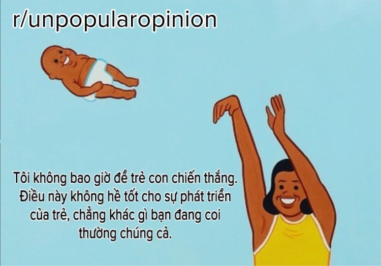 Yeah nhưng mà không. Nếu bạn không bao giờ để một đứa trẻ thắng, chúng sẽ không bao giờ chiến thắng được, và chúng sẽ không chơi với bạn nữa vì chẳng vui gì cả. Điều đó có nghĩa là trẻ cũng chẳng học được kỹ năng gì có ích mà đáng lẽ chúng sẽ có được từ trò chơi đó nữa. Chúng không muốn giành thời gian với bạn nữa đâu.