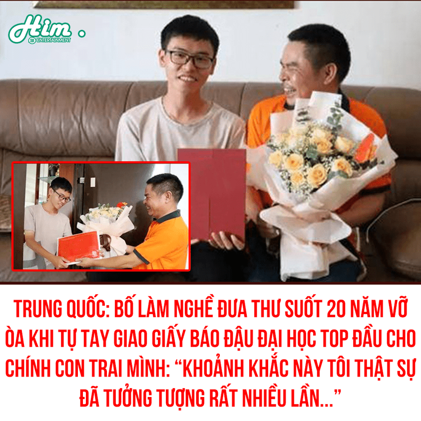 Theo đó, ông bố trong câu chuyện trên đã làm nghề đưa thư suốt hơn 20 năm nay, từ năm 1999. Đều đặn hàng năm, cứ đến dịp có giấy báo đại học, ông lại cần mẫn gửi tới từng nhà. Nhưng điều hạnh phúc nhất đối với ông trong nghề này có lẽ là khoảng khắc được tận tay gửi giấy báo cho con trai mình.