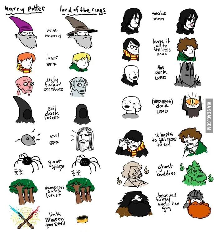Còn về phía JK Rowling, bà ta chỉ tạo ra 1 thế giới “sâu 1 inch và rộng 1 dặm”, có nghĩa là thế giới của Harry Potter hoàn toàn không có chiều sâu, có rất nhiều lỗ hổng và mâu thuẫn trong cốt truyện. Thế giới của bà ấy thì vui đấy, nhưng so với chiều sâu trong thế giới của Tolkien thì nói nhanh cho nó vuông là không có cửa.