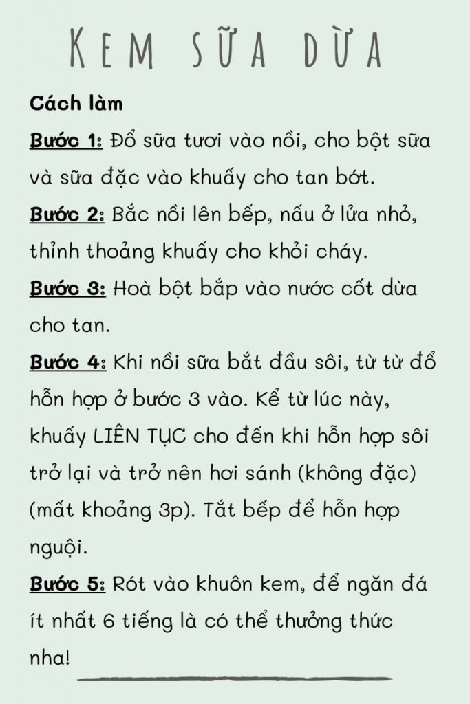 Dưới đây mình chia sẻ công thức kem sữa dừa, mọi người hoàn toàn có thể biến tấu để có kem socola, kem trà xanh, kem vị hoa quả….