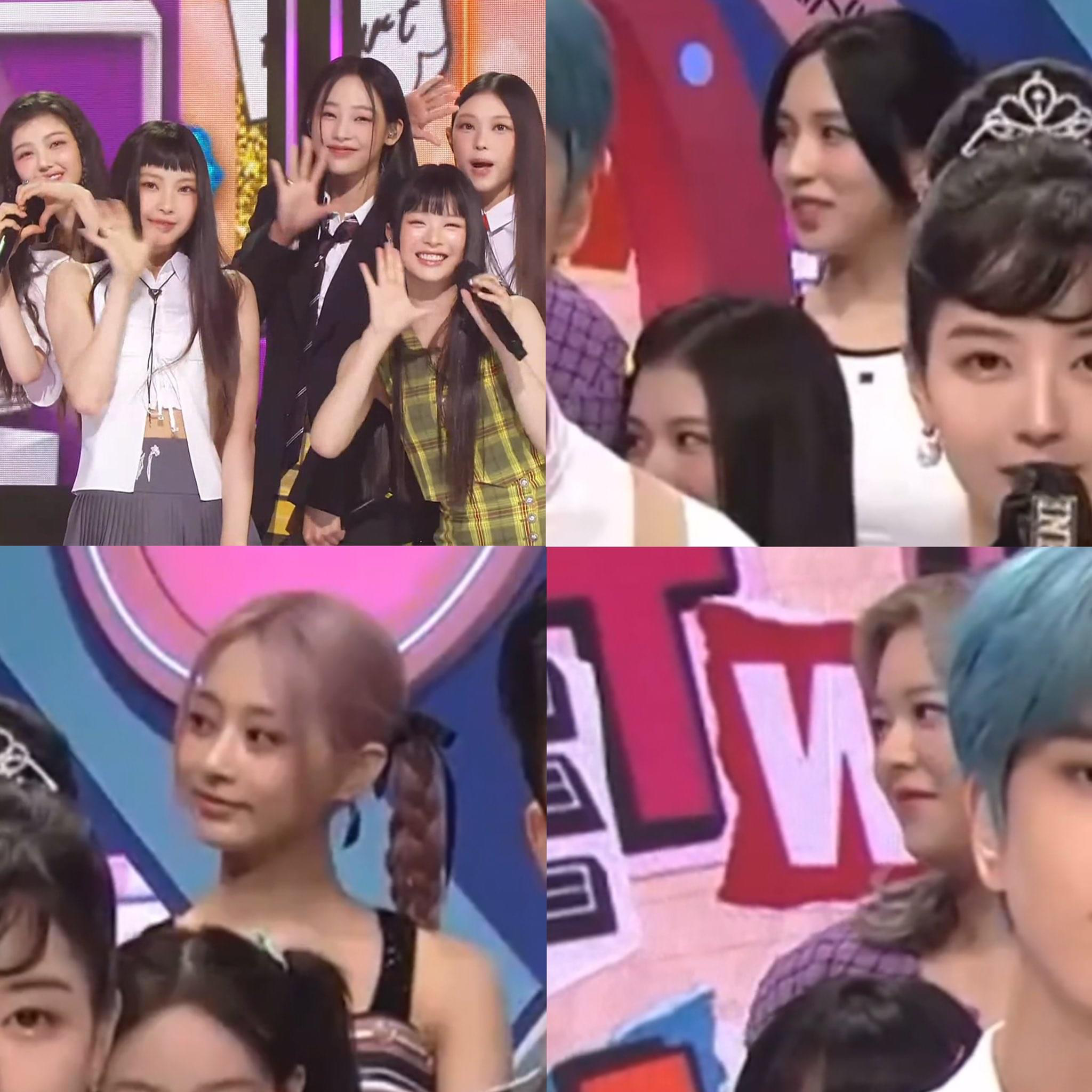 🥰 Trong show Inkigayo ngày 28/8, camera đã ghi lại khoảnh khắc TWICE nhiệt tình chào hỏi và cổ vũ cho NewJeans khi nhóm giành chiến thắng. Khuôn mặt tự hào của TWICE lúc NewJeans thực hiện màn kết “Attention” còn được fan ví von như người mẹ hãnh diện khi thấy con gái mình làm tốt.