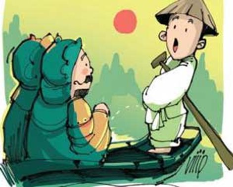 Chẳng ngờ anh lái đò người Việt thản nhiên tụt quần, vạch  “chim” đái vọt vồng trên mui thuyền sứ thần, rồi đọc: