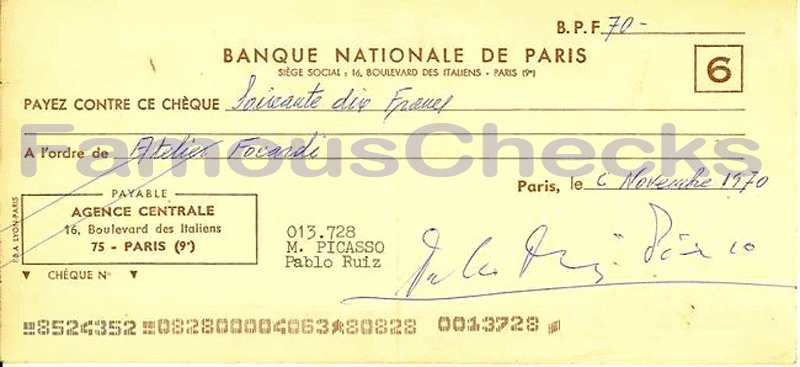 Người ta đồn rằng khi Picasso trở nên nổi tiếng, ông bắt đầu thanh toán mọi thứ bằng séc. Ông cho rằng mọi người thích giữ séc hơn là tiền mặt. Điều này có nghĩa là, về cơ bản, ông đã mua hàng hóa và sử dụng dịch vụ miễn phí. Khéo léo phải không?