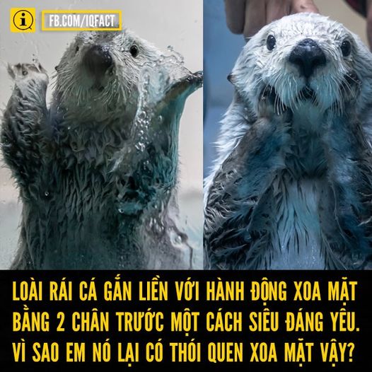 Loài rái cá gắn liền với hành động xoa mặt bằng 2 chân trước một cách siêu đáng yêu. Chúng đang thực hiện skincare-routine chăng?