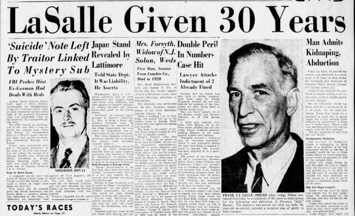 Hắn duy trì mối quan hệ cha con giả, mặc dù Quận Camden đã truy tố La Salle lần thứ hai. Vào năm 1948, công tố viên Mitchell Cohen đã truy tố La Salle về tội dụ dỗ Sally, với mức án tối đa từ 3 đến 5 năm tù.